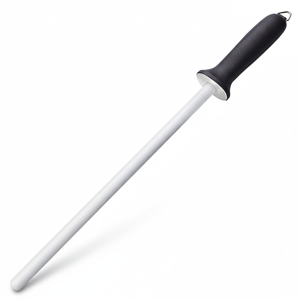 Mantener el filo de sus cuchillos es tan importante como la calidad del corte en sí. La Chaira Profesional KitchenBar de 12 Pulgadas es la herramienta fundamental para el mantenimiento diario de las hojas, asegurando que su equipo de corte se mantenga en condiciones óptimas de rendimiento.Características Esenciales para el Profesional:Longitud Ideal: Con una barra de 12 pulgadas (30.5 cm) de afilado útil, esta chaira es perfecta para trabajar con cuchillos grandes de chef y fileteadores, permitiendo trazos largos y consistentes para un afilado uniforme.Material de Alta Dureza: El asta de la chaira está fabricada en acero de alta calidad (frecuentemente recubierto con cromo duro o en acero inoxidable) que ofrece la dureza necesaria para enderezar el filo y realinear las microsierras de la hoja de forma efectiva.Mango Ergonómico y Seguro: Incorpora un mango de diseño ergonómico (típicamente de polipropileno negro) que proporciona un agarre firme y cómodo, crucial para el manejo seguro y preciso durante el afilado. Además, suele incluir un anillo de seguridad o tope para proteger la mano.Mantenimiento Efectivo: No afila en el sentido estricto, sino que restaura el filo realineando el borde del cuchillo, prolongando la vida útil de sus hojas entre afilados más profundos.La chaira KitchenBar de 12″ es una inversión en la longevidad y precisión de todo su juego de cuchillos.