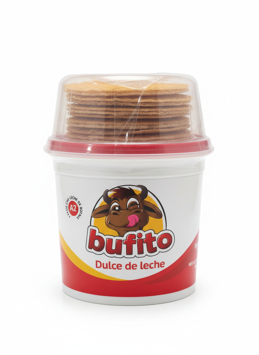 El kit de Arequipe Bufito de 500 gr y sus crujientes Obleas ofrece la experiencia completa del postre tradicional en la cocina profesional o casera. El corazón del kit es el Arequipe Bufito, un Dulce de Leche Premium elaborado exclusivamente con leche de búfala, que le confiere una textura superior, excepcionalmente suave, y un dulzor equilibrado que no satura.Las Obleas que lo acompañan son galletas finas y ligeras, con la firmeza y el cruch ideal para contrastar con la cremosidad del arequipe. Este kit es la solución perfecta para servir el postre clásico de forma rápida y elegante, o para integrar el contraste de texturas en preparaciones de repostería gourmet. La calidad de la leche de búfala de Bufito eleva este sencillo postre a una categoría delicatessen.