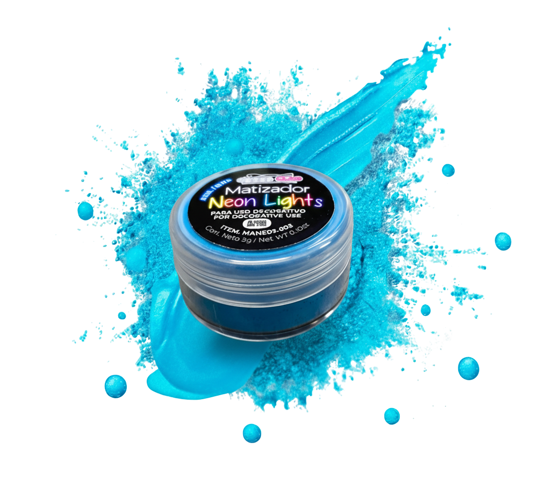Lleva tus creaciones de repostería al siguiente nivel con el Polvo Matizador Azul Neón Lights 3g. Este matizador comestible en polvo es ideal para dar un acabado vibrante y sin brillo, perfecto para diseños modernos y llamativos.Su principal característica es su intenso color neón, que lo hace destacar en cualquier decoración. Es ideal para:Aplicación en Fondant y Pasta de Goma: Espolvorea directamente sobre tus figuras o coberturas para un efecto de color que realmente resalta.Creación de pintura: Mezcla una pequeña cantidad con alcohol de alto grado o esencia de limón para obtener una pintura comestible y líquida, perfecta para pintar detalles precisos con un color brillante y profundo.Este producto es un must-have para quienes buscan un toque de color audaz y un acabado único en sus pasteles, galletas y dulces.