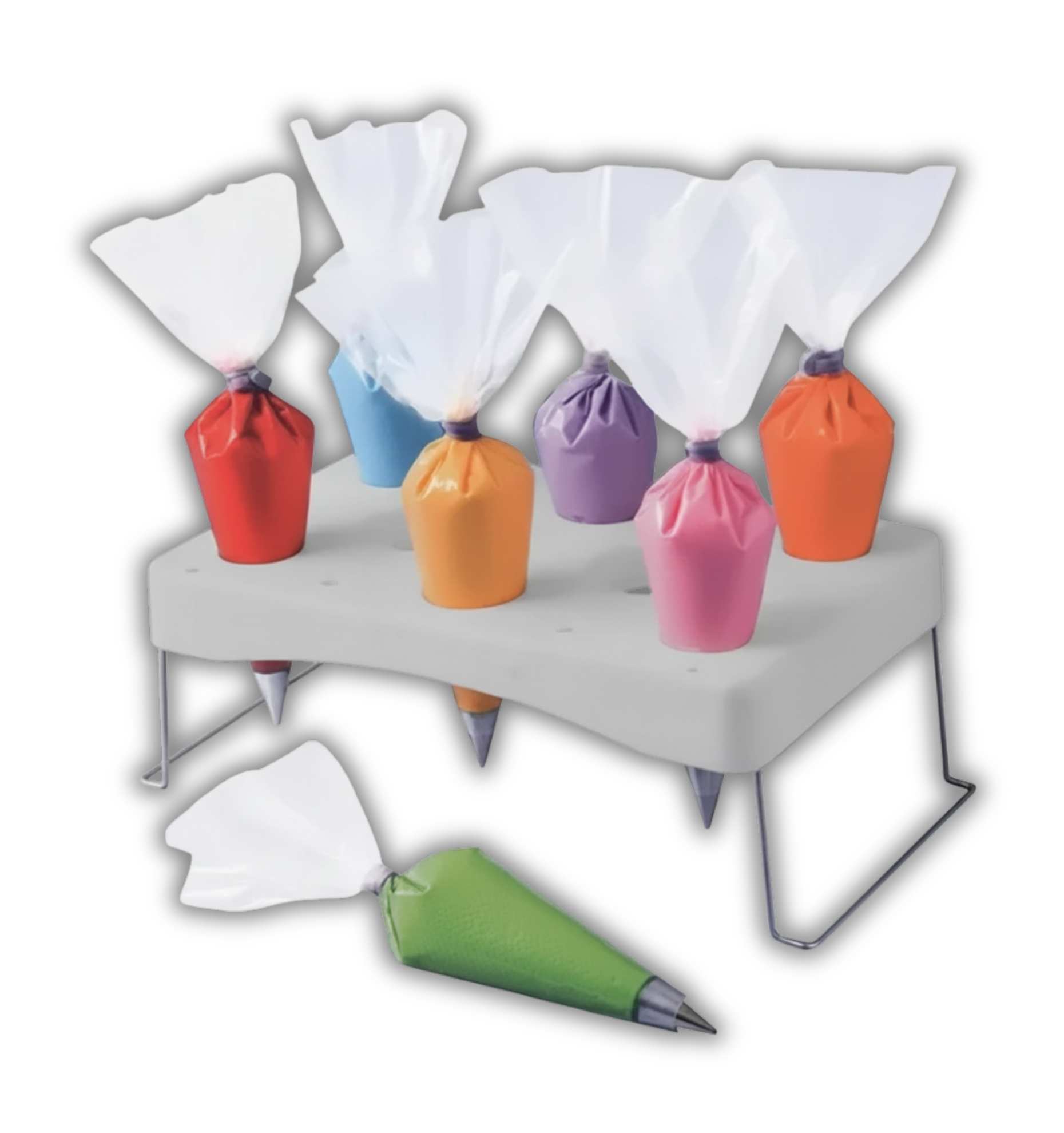 La Bandeja Porta Mangas Caferra es la solución ideal para mantener el orden y la eficiencia en tu estación de trabajo de repostería. Fabricada en plástico resistente con pies de metal, esta bandeja está diseñada para sostener y organizar múltiples mangas pasteleras mientras decoras.