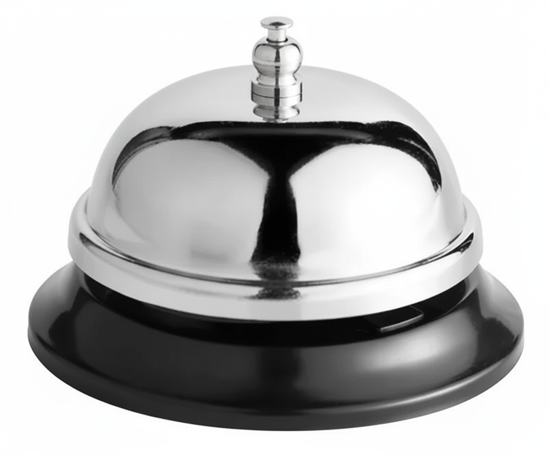 🛎️Esta clásica Campana de Servicio KitchenBar de 3.5″ es el complemento esencial para optimizar la eficiencia y la comunicación en cualquier entorno de servicio, desde cocinas profesionales y barras de bar hasta áreas de recepción y mostradores de pedidos.Características Destacadas:Llamada Clara y Potente: Produce un sonido nítido y audible, ideal para alertar al personal de servicio, camareros o recepcionistas de manera rápida y efectiva.Diseño Clásico y Compacto: Su estilo tradicional, junto con su diámetro de 3.5 pulgadas, la hace perfecta para escritorios y mostradores sin ocupar espacio excesivo.Construcción Duradera: Fabricada con materiales resistentes (típicamente acero niquelado o acero inoxidable) que garantizan una larga vida útil y resistencia al uso constante en entornos exigentes.Uso Versátil: Ideal para indicar que los pedidos de comida o bebida están listos para ser servidos, solicitar atención en recepción o gestionar la rotación de mesas.