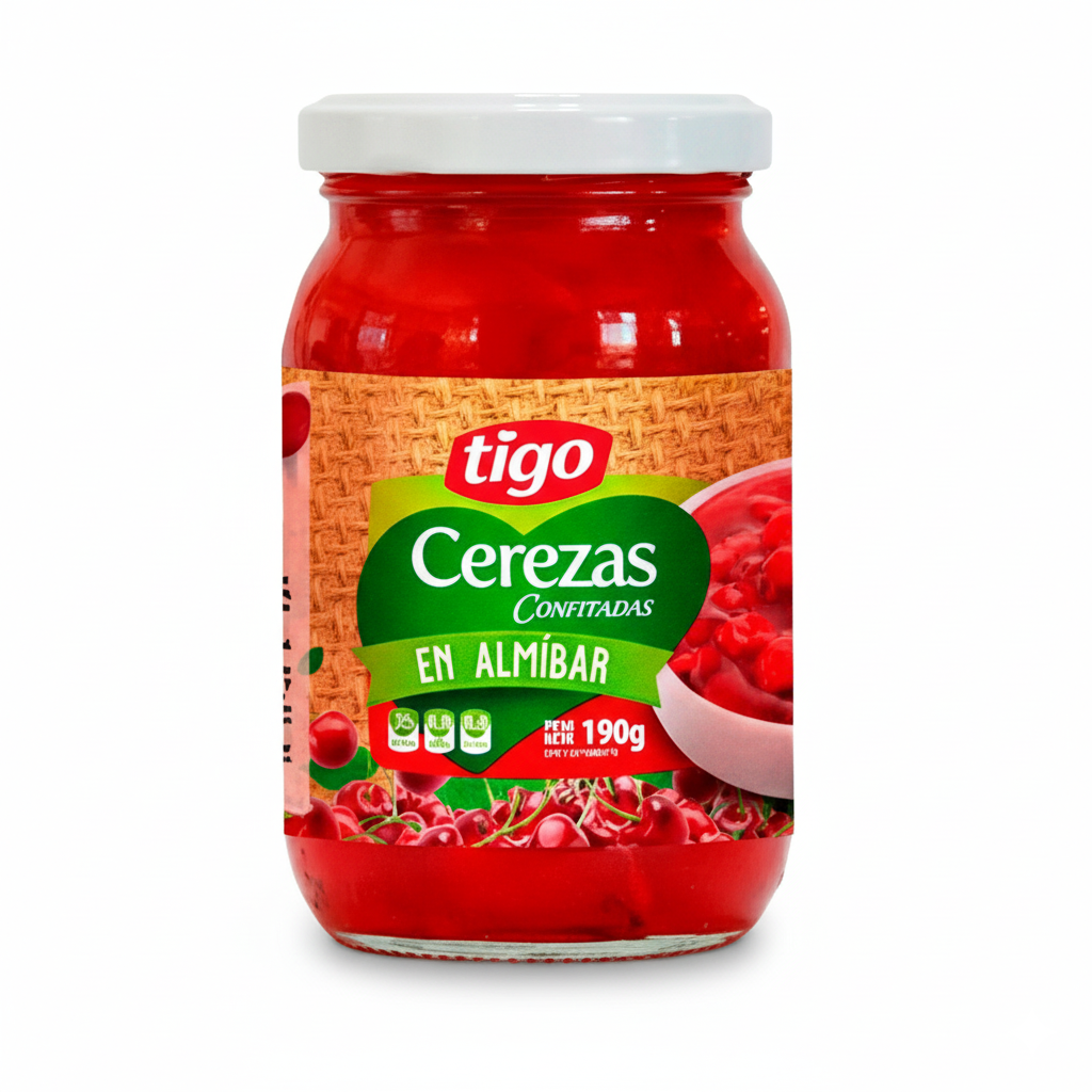 Descripción del Producto: Las Cerezas en Almíbar Tigo en el formato de 190 gramos son cerezas confitadas conservadas en un almíbar denso y dulce. Este producto es altamente valorado en repostería por su color rojo intenso, sabor dulce característico y su textura firme, que se mantiene estable al hornear o refrigerar.Las cerezas en almíbar son un aditamento clásico e indispensable para:Decoración: Se utilizan enteras para decorar cocteles, postres, tartas, pasteles, y helados, añadiendo un toque visual y de sabor.Rellenos y Mezclas: Perfectas para ser incorporadas en masas de tortas (como la torta negra o frutales), muffins o mezclas de frutas confitadas.Coctelería: La cereza y su almíbar son tradicionales para dar el toque final a bebidas como el Manhattan o el Shirley Temple.El almíbar es ideal para humedecer bizcochos o para ser utilizado como jarabe en otras preparaciones dulces.