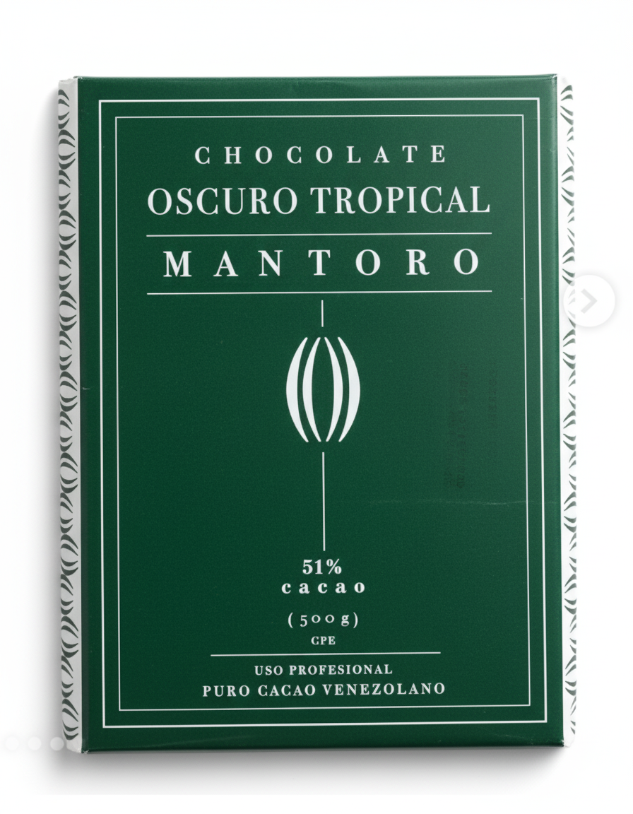 Descripción del Producto: El Chocolate Oscuro 51% Mantoro es un chocolate que contiene un 51% de sólidos de cacao, lo que lo clasifica como un chocolate semi-oscuro (o de leche oscura, dependiendo de la receta exacta). Este porcentaje ofrece un equilibrio perfecto entre la intensidad del cacao y una dulzura suave, resultando en un sabor definido, pero no excesivamente amargo, ideal para el paladar general.Se elabora con cacao venezolano, reconocido mundialmente por su calidad y riqueza aromática. El 51% de cacao asegura una textura suave y una fluidez media gracias a su proporción de manteca de cacao, haciéndolo muy versátil en la cocina.Usos Profesionales y Domésticos:Bombonería y Coberturas: Es altamente recomendado para el bañado de bombones y la cobertura de pastelería debido a su fluidez y brillo al ser templado.Postres: Ideal para incorporar en mousses, salsas de chocolate, ganaches, brownies o para la elaboración de chocolate a la taza, aportando un sabor a chocolate distintivo sin ser abrumador.Consumo Directo: Es el chocolate perfecto para quienes disfrutan de un sabor a cacao definido, pero con una agradable suavidad.