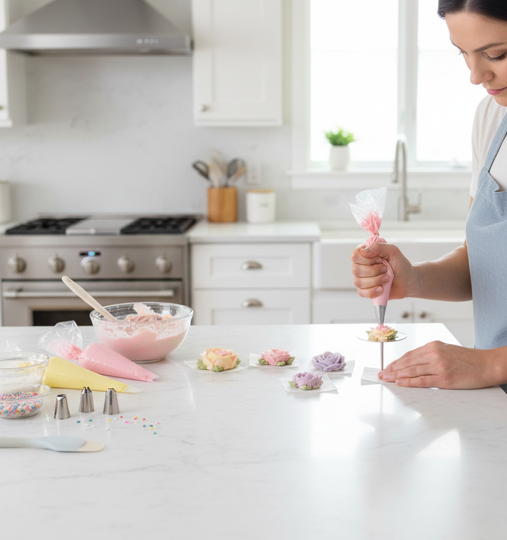 Domina el arte de la decoración floral con el Clavo para Flores Wilton, una herramienta fundamental para crear flores de glaseado perfectas y de aspecto profesional. Este pequeño pero poderoso utensilio te permite sostener y girar fácilmente el glaseado o la crema mientras trabajas, lo que te da el control necesario para formar pétalos delicados y detallados, desde rosas hasta margaritas.Características principalesDiseño ergonómico: La superficie plana y redonda en la parte superior proporciona una base estable para formar la flor, mientras que el vástago delgado facilita el manejo y el giro con una sola mano.Material de alta calidad: Fabricado en acero inoxidable o aluminio, es resistente a la corrosión, duradero y fácil de limpiar.Precisión y control: Te permite elevar tu trabajo y tener una perspectiva de 360 grados, asegurando que cada pétalo esté en la posición correcta para un resultado simétrico y hermoso.Imprescindible para decoradores: Es una herramienta básica y esencial para cualquier nivel, desde principiantes que aprenden a hacer su primera rosa hasta profesionales que crean arreglos florales complejos.