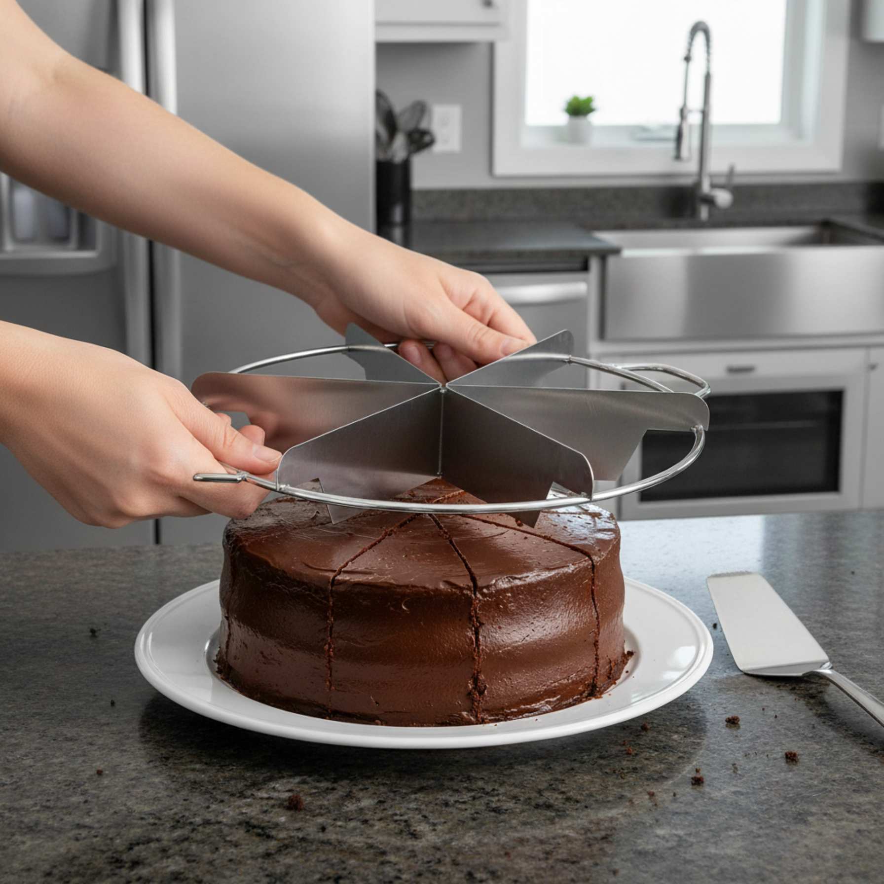 Sirve porciones perfectamente iguales con este cortador de 6 porciones de acero inoxidable de Winco. Ideal para pasteles, tartas, brownies y lasañas, esta herramienta te ayuda a dividir tus preparaciones de forma rápida y precisa.Fabricado con acero inoxidable de alta calidad, este cortador es duradero, resistente a la corrosión y fácil de limpiar. Su diseño simple, con seis divisiones iguales, garantiza que cada porción sea consistente, mejorando la presentación de tus platos.Es una herramienta esencial para panaderías, restaurantes o para cualquier persona que desee simplificar el proceso de servir y mantener la uniformidad en cada corte.