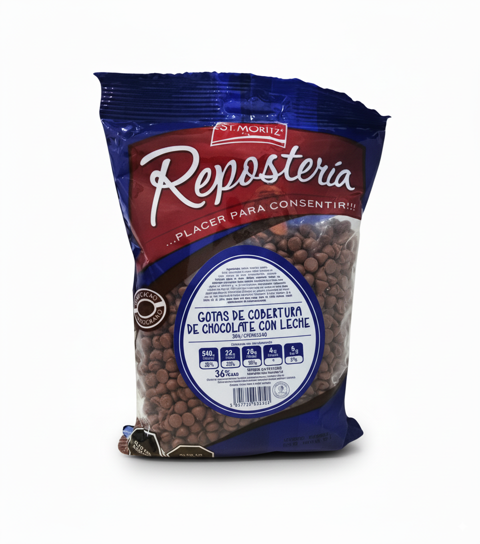 Consigue un acabado suave y un delicioso sabor cremoso con las Gotas de Cobertura de Chocolate con Leche St. Moritz. Su práctico formato en gotas está diseñado para fundirse de forma rápida y uniforme, lo que la hace ideal para bañar, moldear y crear glaseados perfectos para tus postres.Su sabor dulce y familiar a chocolate con leche es ideal para pasteles, galletas, brownies y cualquier receta que requiera una textura que se derrita fácilmente. Es un producto versátil y de excelente rendimiento que no puede faltar en tu despensa de repostería.