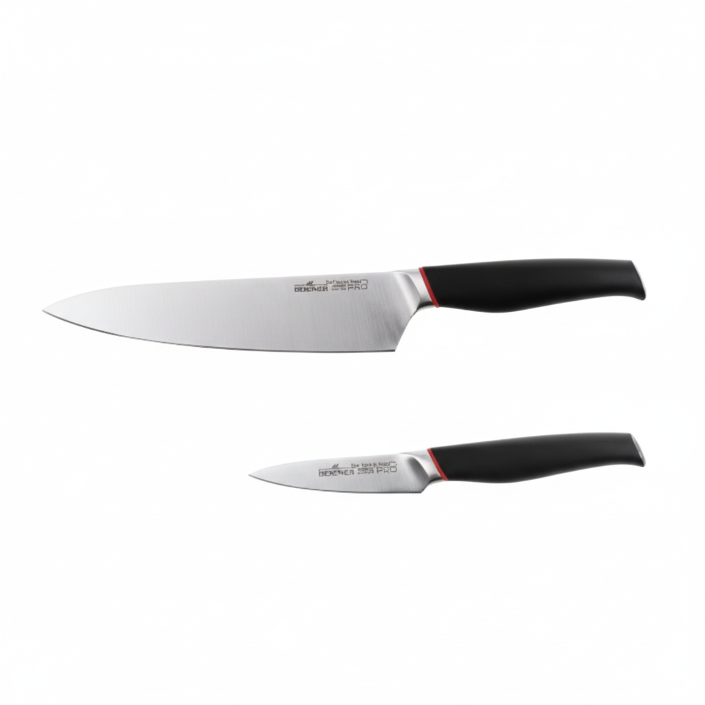 El Juego de 2 Cuchillos Magefesa Línea Practix ha sido diseñado para ofrecer funcionalidad, durabilidad y un rendimiento de corte diario a un precio accesible. Este dúo esencial cubre las dos necesidades de corte más básicas y frecuentes en cualquier cocina.Características de la Línea Practix:Acero Inoxidable de Calidad: Las hojas están elaboradas en acero inoxidable (frecuentemente descrito como forjado alto en carbono en esta línea), lo que garantiza una excelente resistencia al óxido y un buen poder de corte para el uso diario.Diseño Duradero: Ofrecen un acabado suave y brillante, resistente al desgaste constante en la cocina.Mango Ergonómico: Cuentan con mangos de material termoplástico (generalmente en color negro) que brindan un agarre seguro y cómodo para una mejor manipulación y control.Fácil Mantenimiento: Su diseño simple y la composición de sus materiales los hacen aptos para lavavajillas, facilitando la limpieza.El set Practix de Magefesa es la opción inteligente para quienes buscan equipar su cocina con herramientas funcionales y duraderas sin sacrificar el presupuesto.