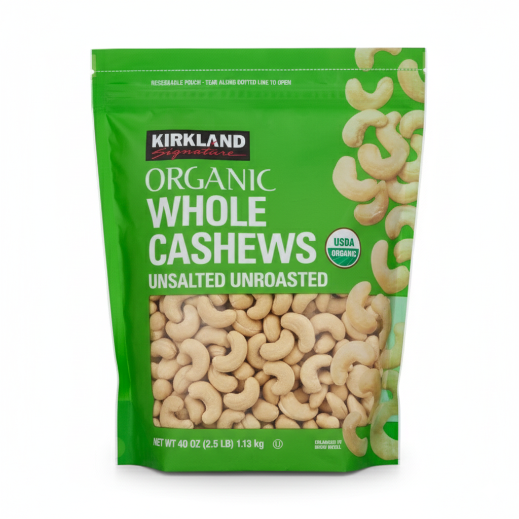 Merey Kirkland Signature es un fruto seco premium y versátil, ideal para el snacking saludable, la cocina y la repostería. Este envase de 1.13 kg ofrece nueces enteras crudas, destacando por su sabor suave, su textura tierna y su pureza al ser un producto orgánico de un solo ingrediente.Ingredientes:Nueces de la India Orgánicas (Merey / Anacardo)Características Destacadas:Un Solo Ingrediente: 100% nueces de la india.Sin Aditivos: No contienen sal, aceites, azúcares añadidos ni conservadores.Crudas (Raw): Ideales para comer directamente, remojar, o utilizar en recetas que requieran nueces crudas (como leches vegetales o cremas).Beneficios: Alta fuente de grasas monoinsaturadas (grasas saludables), proteínas, y minerales como Cobre y Magnesio.