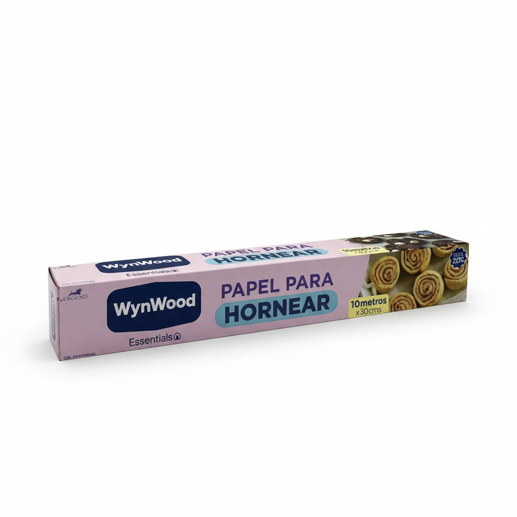 El Papel para Hornear Wynwood es un producto de uso doméstico y repostero, diseñado para optimizar el proceso de cocción y repostería en hornos convencionales.Usos Profesionales y DomésticosRepostería: Indispensable para hornear galletas, bizcochos, macarons, brazos gitanos y tartas, asegurando un desmoldado perfecto y limpio.Cocina Salada: Ideal para asar carnes, pescados o verduras al horno sin que se adhieran ni se quemen por debajo.Cocina sin Grasa: Permite cocinar y hornear sin necesidad de utilizar aceites, mantequillas o grasas adicionales para engrasar la bandeja.Versatilidad: Puede ser utilizado tanto en horno convencional como en el microondas (siguiendo las temperaturas máximas recomendadas).Consejo Profesional: Aunque el papel Wynwood es resistente al calor, es crucial evitar que entre en contacto directo con las resistencias o la llama del horno. Utilícelo siempre cubriendo la bandeja o el molde.