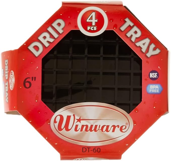 Este juego de 4 bandejas de goteo de Winco es un accesorio esencial para cualquier cocina. Con unas dimensiones de 15 x 15 cm, estas bandejas son perfectas para atrapar derrames, goteos y salpicaduras de sartenes, cazuelas o utensilios de cocina, manteniendo tu estufa o encimera limpia y protegida. Características clave: Versatilidad: Ideales para usar bajo ollas y sartenes mientras cocinas, o para colocar platos calientes en la mesa sin dañar la superficie.Durabilidad: Fabricadas con materiales resistentes, estas bandejas son duraderas y están diseñadas para soportar el calor y el uso diario.Fácil de limpiar: Su superficie lisa y no porosa permite una limpieza rápida y sencilla, ya sea a mano o en el lavavajillas.Diseño compacto: El tamaño de 15 x 15 cm las hace fáciles de almacenar y no ocuparán mucho espacio en tus gabinetes de cocina.