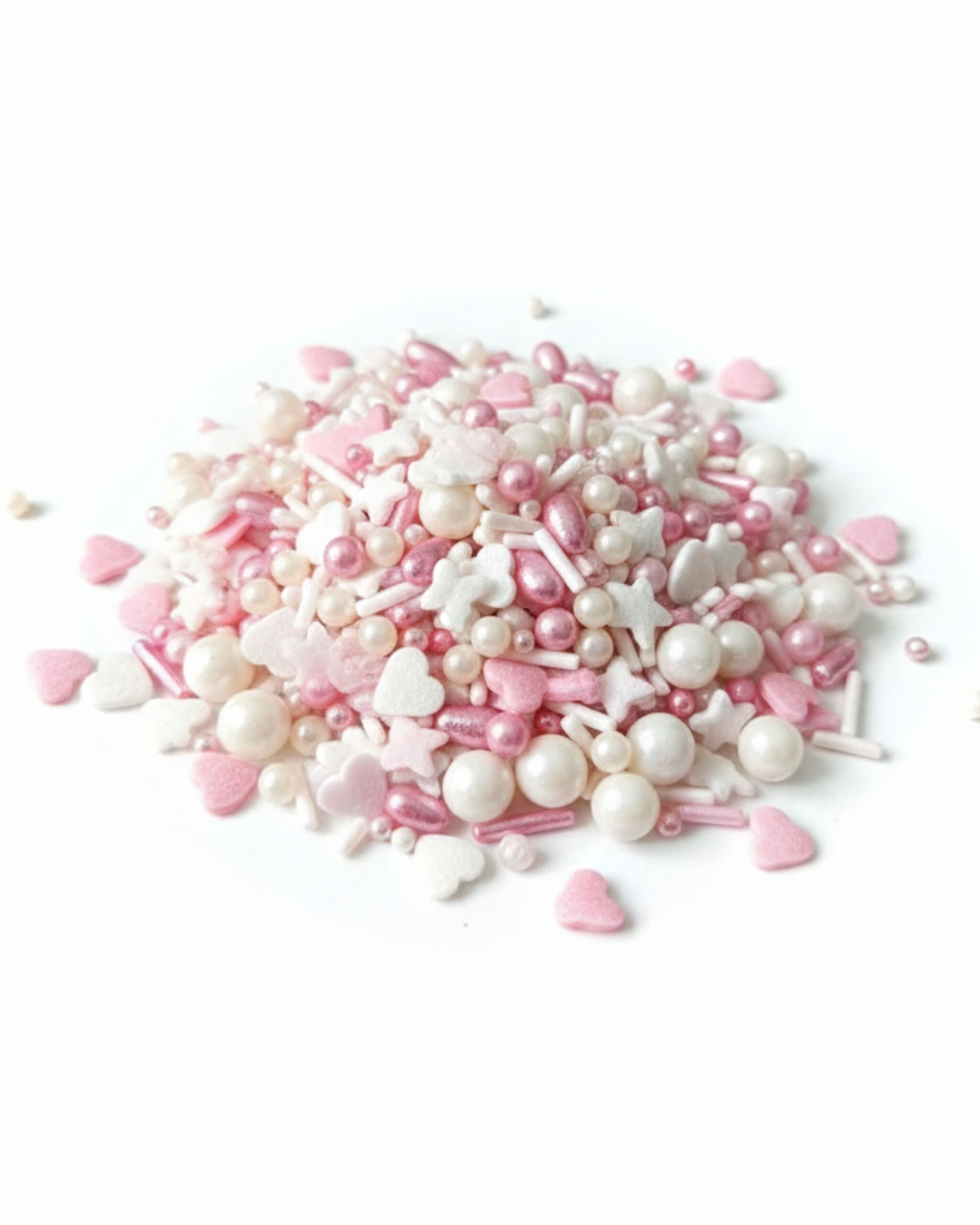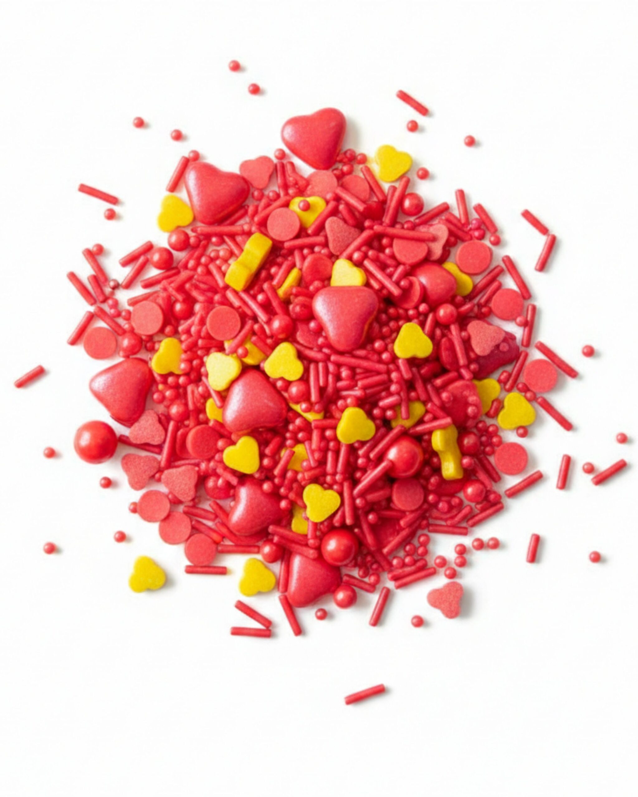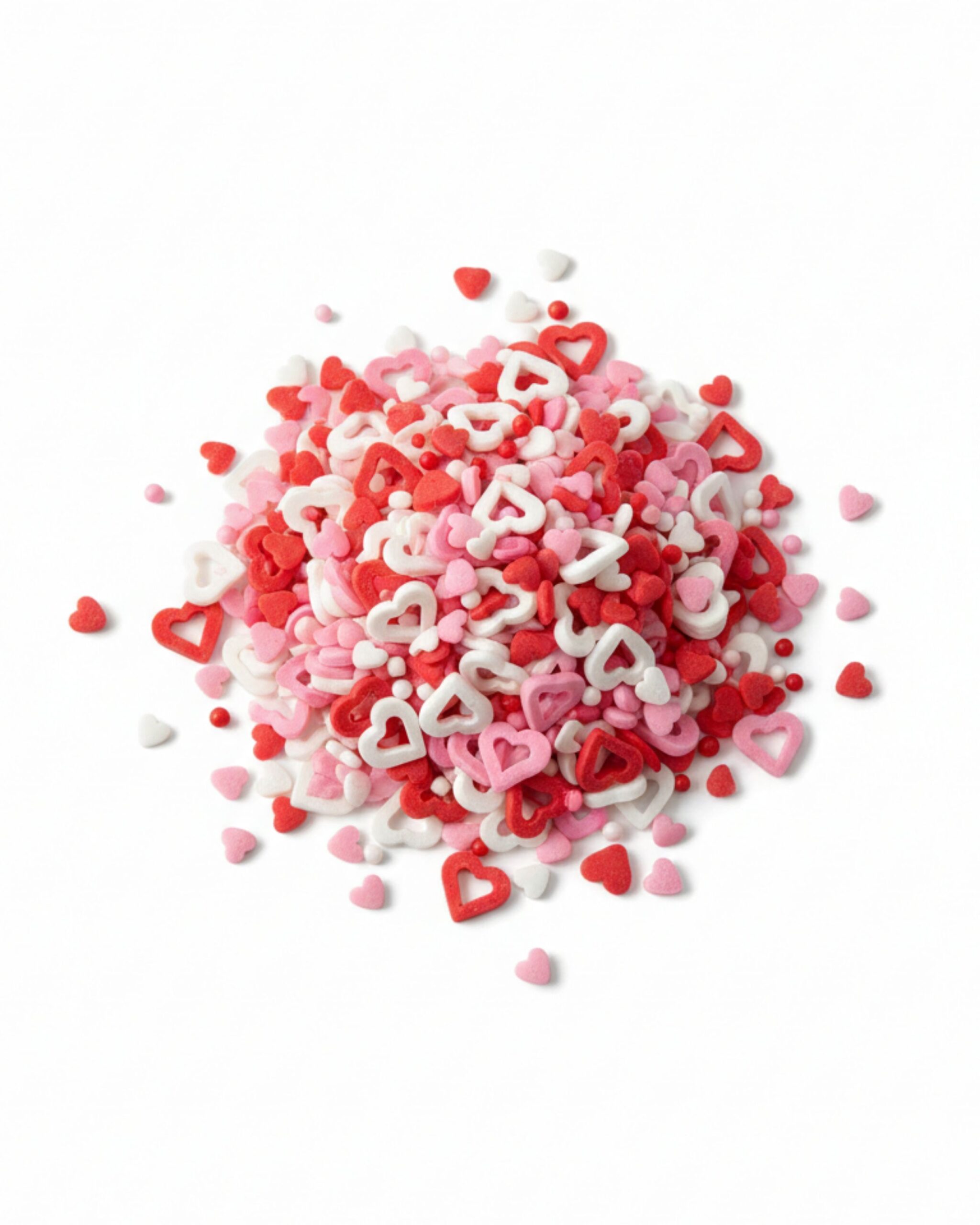 Dale el toque final perfecto a tus creaciones con nuestra selección exclusiva de sprinkles de temporada. Cada sobre de 10g ha sido diseñado para ofrecer una combinación equilibrada de texturas, colores y formas que transformarán tus pasteles, galletas, cupcakes y bombones en verdaderas obras de arte románticas.