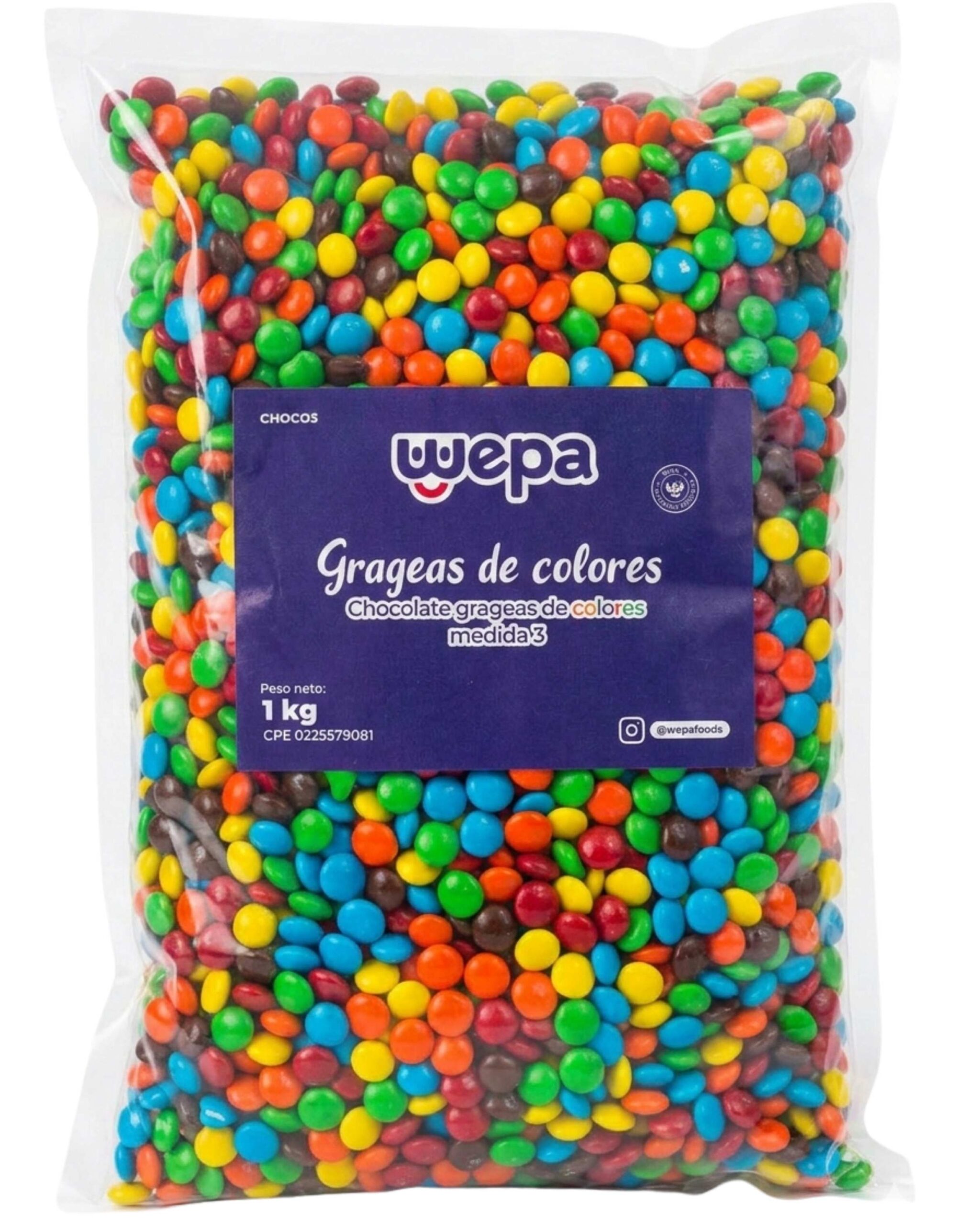 Aporta una explosión de color y alegría a tus creaciones con las Grageas de Colores Wepa. Estas pequeñas piezas de chocolate confitado, conocidas también como lluvia de colores o sprinkles, son el complemento indispensable para transformar cualquier postre sencillo en una obra de arte vibrante. Su medida estándar garantiza un equilibrio perfecto entre crujencia y sabor en cada bocado.